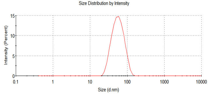 合成的纳米颗粒可使用动态光散射仪测定粒径与均一度。 正常结果如下图所示: