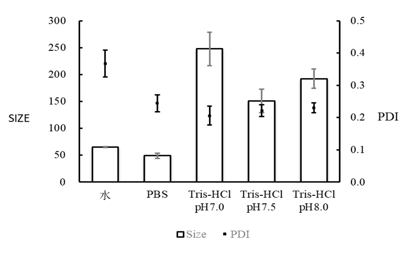 该实验条件下,使用PBS缓冲液对产物稀释,获得的纳米颗粒粒径最小。